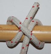 Bei Zwei- und Dreibeinen, die Kohten oder Jurten tragen kannst du unter Umständen sogar ganz auf den Webeleinstek verzichten, weil das herunterhängende Seil gleich unter dem Kohten-, Jurtenkreuz hindurchgeführt wird und somit genug Spannung auf dem Seil lastet, so dass der Bund sich nicht lockern kann.