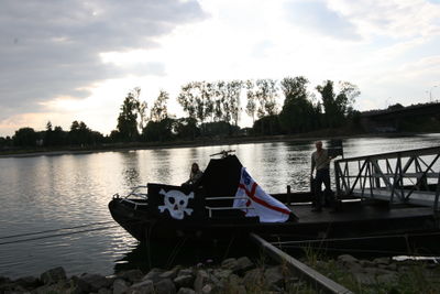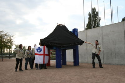 Getreu unseres Kurs-Mottos "Kinzig-Piraten" enterten wir am Ufer des Rheins einen Bootsanleger und bauten auch hier unsere Kohte auf.