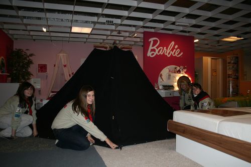 Getreu dem Motto "Alles dreht sich um die Kohte" entstand dieses Bild unter den verblüfften Augen einiger Zuschauer.