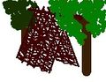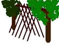 Zuerst sucht man sich zwei starke Bäume, die ungefähr 2- 3 Meter von einander entfernt sind. Die Bäume solten etwa in gleicher Höhe eine Astgabel besitzen. Wichtig ist, dass weder die Bäume noch die Astgabeln morsch sind, da sie einiges an Gewicht halten müssen. Es wäre nämlich gefährlich, wenn die Hütte bei einem Sturm zusammenfallen würde.