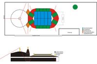 Diese Jurtenkirche wurde 2004 für eine Hochzeit von zwei Pfadfindern gebaut. Eine Woche lang arbeiteten Freunde des Brautpaares nach Feierabend an der Konstruktion. Zunächst wurden die einzelnen Planen sortiert und einzelne Segmente vorgeknüpft (z.B. die Kirchtürme, die beiden Seitenwände und die Dächer). Am Aufbauort selbst wurden dann die fertigen Teilstücke aneinander montiert, was die Montage um einiges erleichterte.