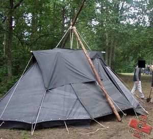 Das war die Beschreibung zum Aufbau eines Einmasters. Man kann die Kohte aber auch als Zweimaster (wie oben im Bild), oder auch an einem Baum, usw. aufstellen. Das Prinzip ist überall dasselbe.