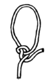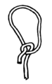 Begonnen wird mit einem Überhandauge, das recht klein bleiben kann (Schritt 1). Für das lose Teil nach dem Überhandauge muss genug Seillänge vorgehalten werden für die Schlaufe in gewünschter Größe.