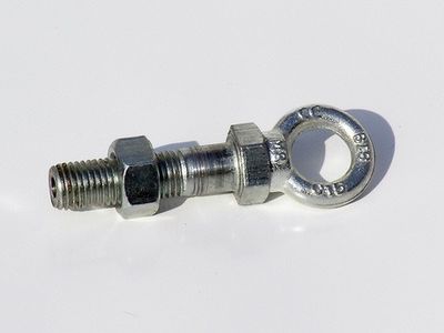 | + | '''Jurtenschrauben''' dienen dazu mehrer Ösen(bis zu 8) von Jurten- oder Kohtenplanen zusammen zu fassen und mit einer Mutter zu sichern. Sie ist vor allem bei großen [[Jurte]]n- oder [[Kohte]]n-konstruktionen praktisch([[Jurtenburg]], [[Kohtenpyramide]]). Die Schraube ist so gebaut das man von unten die Spitze einer [[Teleskopstange]] einführen kann und sie oben an einem Ring abspanne kann. | ||
