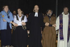 | + | [[Bild:Friedenslicht03-60.jpg|thumb|VertreterInnen der verschiedenen Verbände und Religionen|right]]Die Pfadfinder tragen das Licht in Krankenhäuser, Moscheen, Wohnhäuser, Geschäfte, Schulen und soziale Einrichtungen. | ||