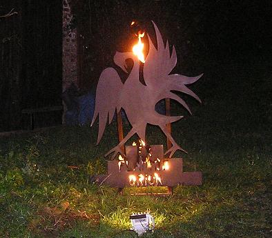 Version vom 4. Mai 2007, 21:09 Uhr von Hermes (Diskussion | Beiträge) (Feuerskultur "Phoenix" zum 30jährigen Jubiläum des Jungenbund Phönix zur Silvesternacht 2006 kurz vor der Fertigstellung (12. Dezember 2006). Material: Schwarzblech, feuerfest lackiert)
