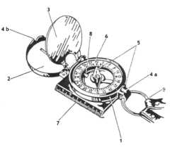 - Um z.B. Osten anzupeilen, die O-Markierung auf den Strich beim Spiegel stellen.