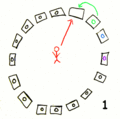 Version vom 26. Januar 2008, 20:03 Uhr von Kieselstern (Diskussion | Beiträge) (Beispielhafter Spielablauf beim Spiel Ozeanwelle. 1: Rot und Grün wollen den selben Platz einnehmen. 2: Grün hat es geschafft, weiterzurücken, bevor Rot sich setzen kann. 3: Rot nimmt Blau den Platz weg. Blau muss in die Mitte. 4: Blaus Platz ist f)