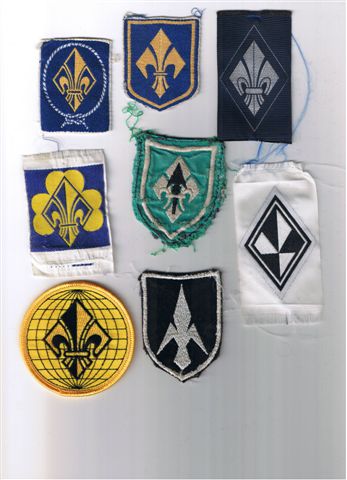 Beispiele von Rautenlilien deutscher Pfadfinderverbände von 1948 bis heute. Von links nach rechts und von oben nach unten